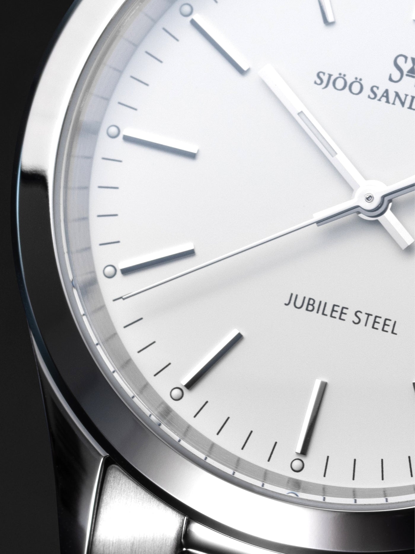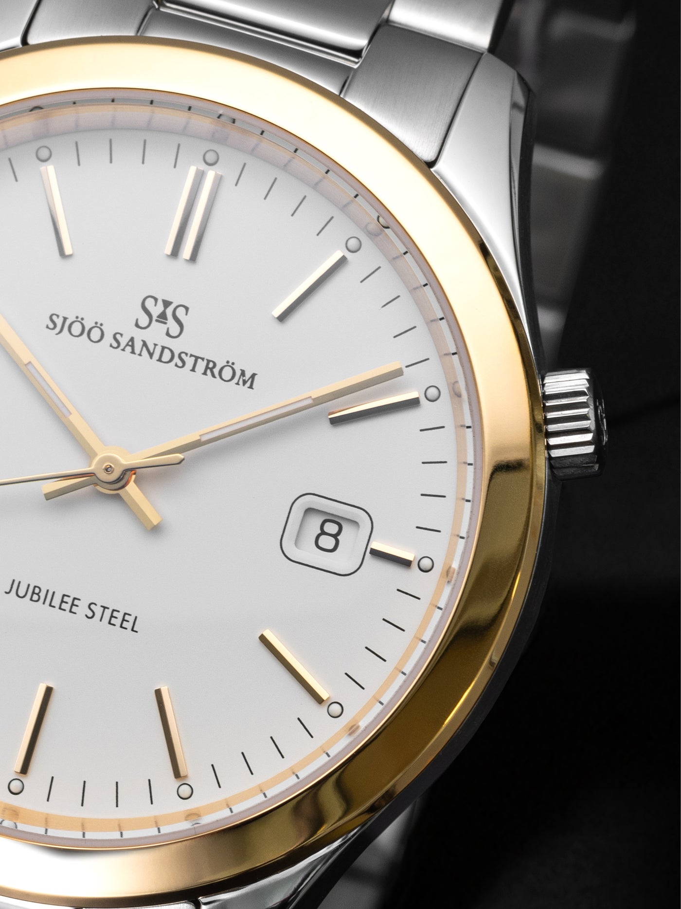Jubilee Steel von Sjöö Sandström. Ein sanftes Quarzwerk in all seiner eleganten Schlichtheit, das Sjöö Sandströms Fokus auf Technologie, Innovation und exklusives Design in der Uhrmacherei nicht beeinträchtigt. Mit unserer Geschichte sind unsere Uhren ein bedeutungsvolles und solides Geschenk. Bei Jubilee Steel kann eine Nachricht auf die Gehäuserückseite graviert werden. Die Uhr ist sowohl für Männer als auch für Frauen erhältlich. Eine Uhr in schwedischer Handwerksqualität wird zu einem klaren Symbol für Wert.