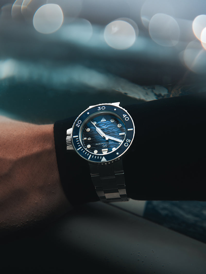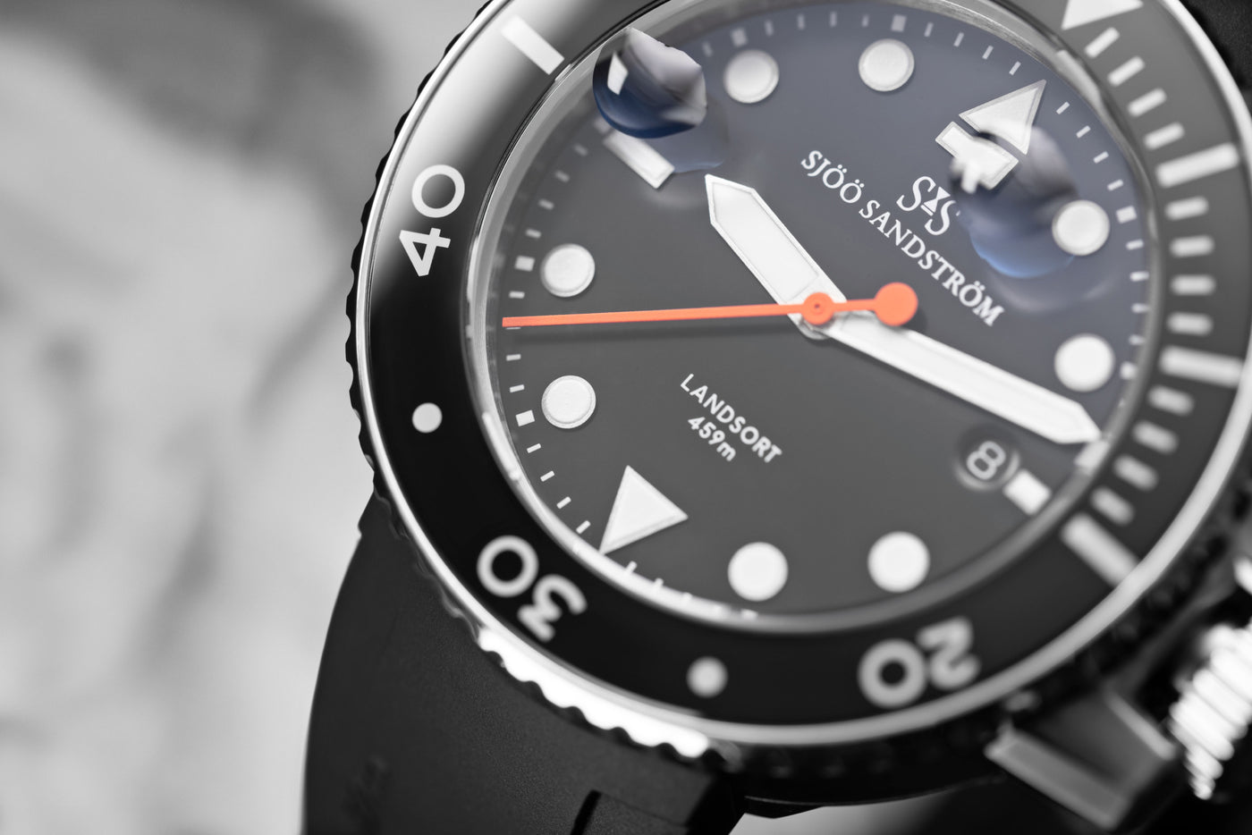 Seit der Einführung von Landsort im Jahr 2011 ist die Uhr ein entscheidender Teil des Rückgrats und der DNA von Sjöö Sandström geworden. Ihr Design ist absolut einzigartig und nirgendwo anders zu finden. Diese neue Version erfüllt alle Versprechen ihres Vorgängers: die Anforderungen der schwedischen Marine erfüllen und gleichzeitig einen exquisiten Stil bieten. Das neue 42,5-mm-Gehäuse ist schlanker als das Vorgängermodell mit 44,2 mm. Ein schlankerer Kronenschutz sorgt außerdem für weitere Eleganz. Die neue, aktualisierte Lünette aus Saphirglas ist wirksam widerstandsfähig gegen Kratzer und Flecken und der Stundenzeiger ist jetzt mit Superluminova gefüllt. So fragt sich niemand mehr, wie spät es im dunklen Wasser unter der Oberfläche oder in den Nachtstunden ist. Mit dem alten Taucherhelm auf der Gehäuserückseite zollen wir all jenen vor uns Tribut, die die Grenzen des Möglichen verschoben und das Tauchen zu dem gemacht haben, was es heute ist. Das Gummiband hat ebenso wie die Schnalle ein aktualisiertes Design.