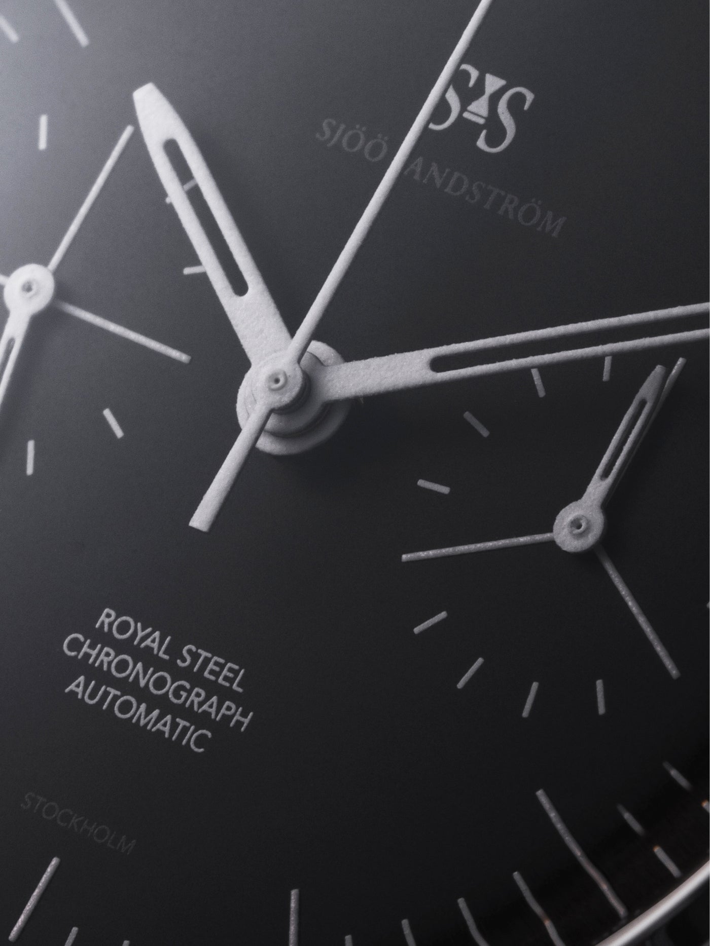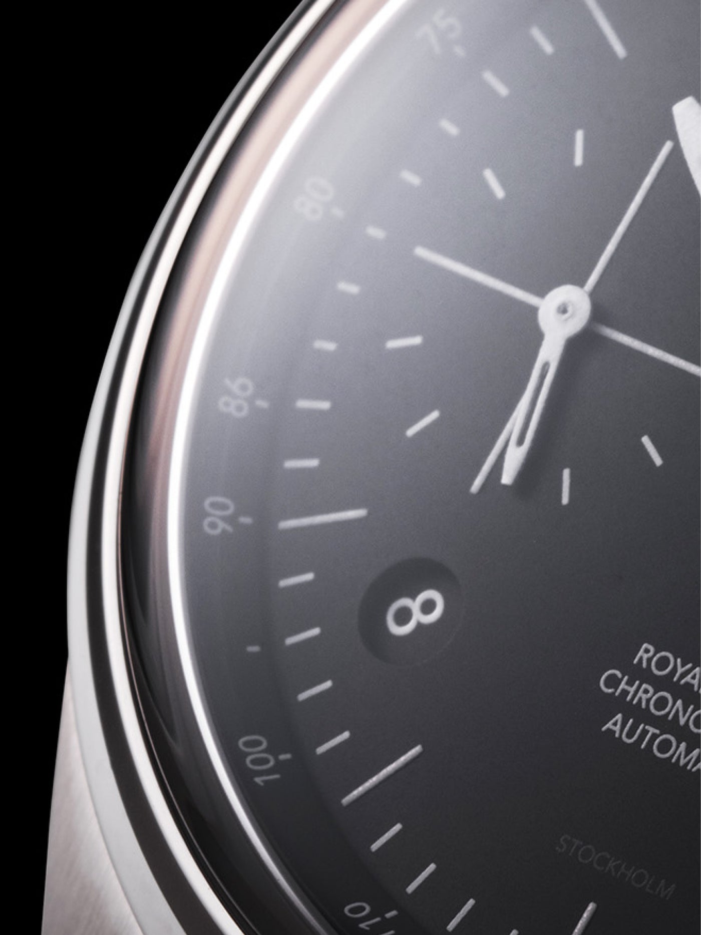 The matte black dial and refined tachymeter scale play with light, shadow, and proportion - hallmarks of Claesson Koivisto Rune’s architectural approach. A subtle highlight of the number 86 pays tribute to Sjöö Sandström’s founding year and the annual tradition of producing only 86 pieces.
